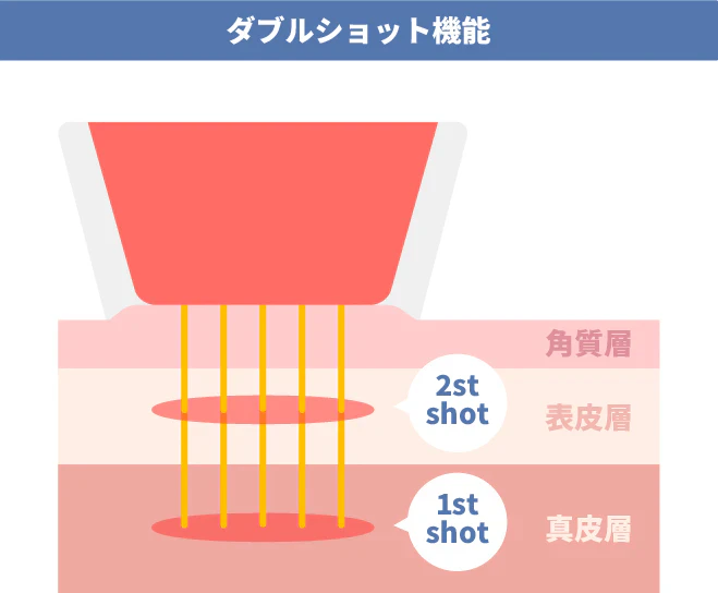 ダブルショット機能で施術時間短縮、効果は倍増!