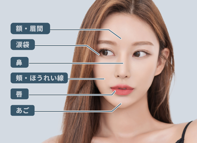 皮膚の真皮層や皮下脂肪を補充しシワや希望の部位のボリュームを改善します。